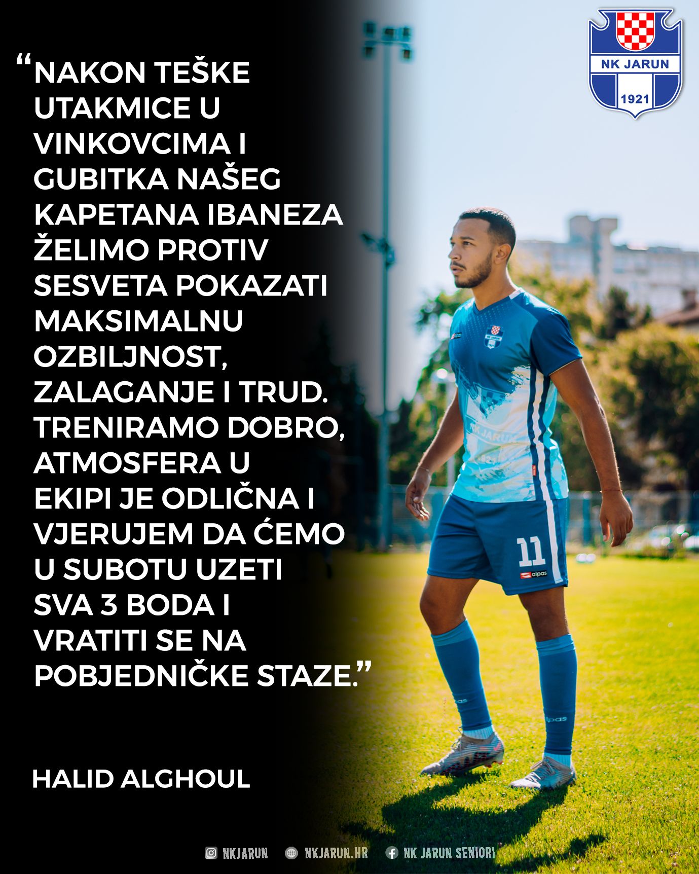 “Nakon teške utakmice u Vinkovcima i gubitka našeg kapetana Ibabeza, želimo protiv Sesveta pokazati maksimalnu ozbiljnost, zalaganje i trud. Treniramo dobro, atmosfera u ekipi je odlična i vjerujemo da ćemo u subotu uzeti sva 3 boda i vratiti se na pobjedničke staze.”